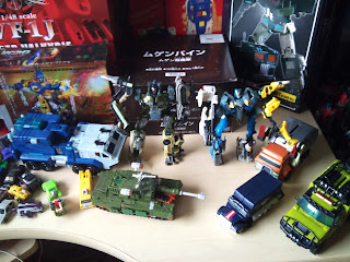 Los que me traje de São Paulo y los primeros intercambios del Garage. ¿Creerán que no he transformado todavía a Bludgeon, Wreck-gar, Payload y Ratchet?